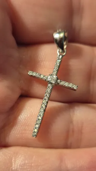 Elegante colgante con forma de cruz, elaborado en plata y adornado con moisanitas. - Diseño de cruz. - Material: Plata. - Piedras: Moisanita.