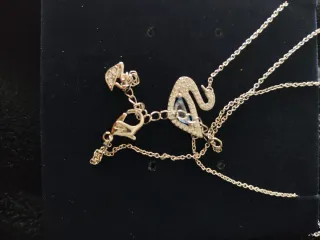 Elegante collar con diseño de cisne de la marca Swarovski. Una pieza delicada y brillante. - Colgante con forma de cisne. - Detalle de cristales brillantes. - Piedra central azul.