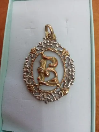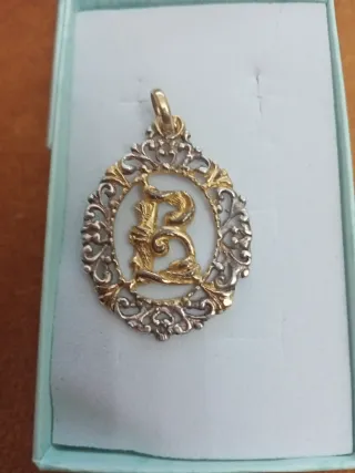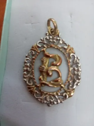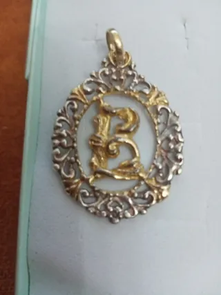 Precioso colgante antiguo con la inicial B en un diseño ornamental. - Diseño ovalado con detalles calados. - Combinación de tonos dorados y plateados.