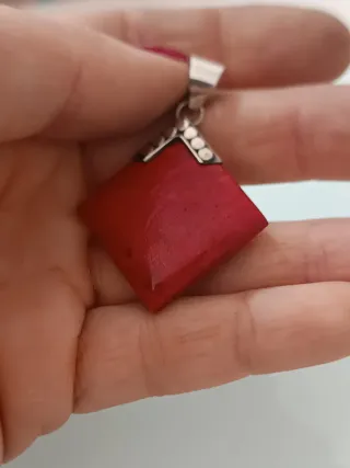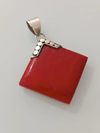 Elegante colgante con un diseño único. - Elaborado en plata de ley 925. - Incorpora una pieza de coral rojo. - El detalle en la parte superior está adornado con pequeños círculos. - 6 gramos