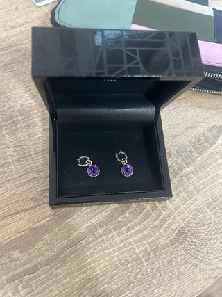 Elegantes pendientes de Joyería Suarez con amatistas. - Diseño colgante con piedra morada. - Enganche de plata.