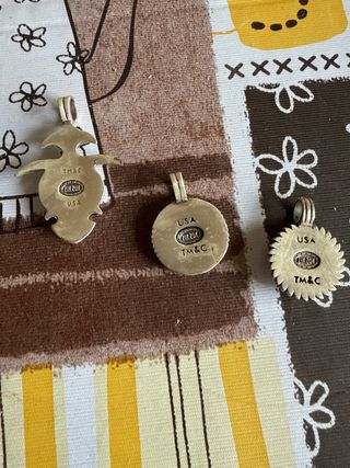 Lote de 75 colgantes de la marca Zik Zok. - Diseño con detalles grabados. - Fabricados en metal plateado. - Cada colgante lleva la marca Zik Zok y USA grabado.