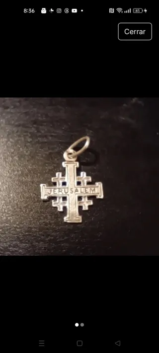 Colgante de la Cruz de Jerusalén en plata. En buen estado. 1,7cm