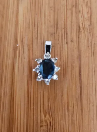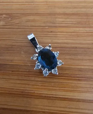 Precioso colgante de plata de ley 925, con piedra central azul y circonitas brillantes alrededor. Diseño elegante y llamativo, ideal para ocasiones especiales o para uso diario. *Plata de ley 925 *Piedra central azul *Circonitas engastadas *Estado: Nuevo sin estrenar