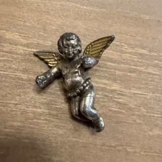 Colgante con forma de angelito, realizado en plata de ley. Mide 3,5 x 2 cm. Pesa 4 gr - Diseño detallado. - Acabado en plata y detalles dorados.