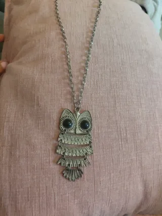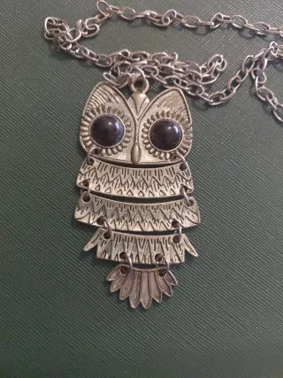 Colgante de buho plateado y negro.