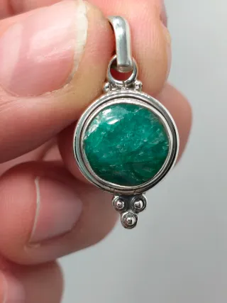Colgante artesanal con una piedra esmeralda natural engastada en plata 925. - Diseño único. - Plata de ley 925. - Piedra esmeralda en bruto.