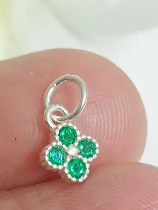 Este mini colgante está adornado con circonitas que simulan el color de las esmeraldas. Su diseño es delicado y elegante.tiene sello 975 - Material: Platade ley 925. - Medidas: 6x6mm.