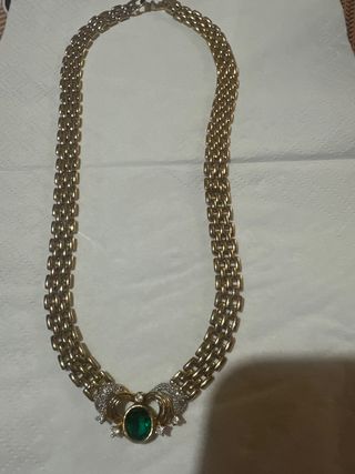 Precioso Colgante retro vintage con cadena en bisutería dorada circonitas y símil esmeralda. Medida de la cadena 49 cm