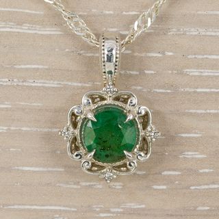 Elegante colgante con una hermosa esmeralda engastada en plata de ley 925. - Diseño floral con detalles. - Plata de ley 925. - Esmeralda central de color verde intenso.