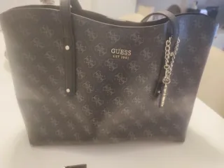Bolso shopper Guess original con un diseño estampado. - Asa de mano o para colgar al hombro cómodamente . - Colgante con logo de la marca.