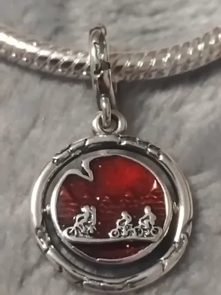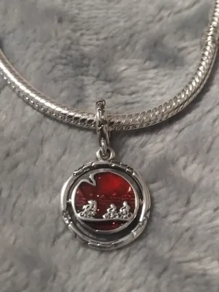 Charm de la serie Stranger Things. Se gira y la parte de atrás hay un demagorgon. Sello 925. NO ES PANDORA - Diseño circular con escena de la pelicula. - Detalles en relieve plateado. - Fondo rojo brillante.