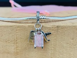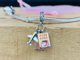 Charm Colgante | Pasaporte Avión y Maleta rosa