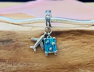 Charm Colgante | Avión y maleta viaje azul