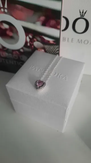Collar Pandora Corazón Rosa Plata
