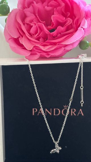 Elegante collar Pandora con un delicado diseño de mariposa. - Cadena fina de plata. - Colgante con forma de mariposa. - Cierre ajustable. -Plata de ley s925