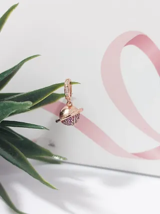 Este encantador colgante de Pandora tiene un diseño inspirado en un planeta. Es un accesorio llamativo y elegante. - Colgante con forma de planeta. - Detalles en tonos rosados y dorados.