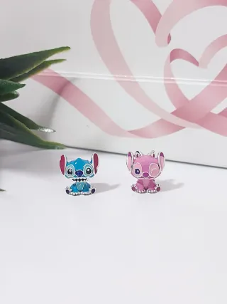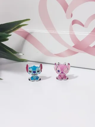 Set de dos charms de Pandora inspirados en Stitch y Ángel. - Charm de Stitch en color azul. - Charm de Ángel en color rosa. - Diseño detallado de los personajes.