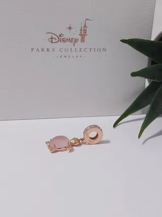 Encantador charm de Dumbo, el elefante volador de Disney, con detalles en rosa y plateado. - Diseño detallado de Dumbo. - Acabado en plata de ley. - Detalles en esmalte rosa.
