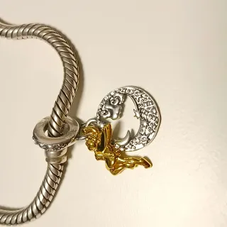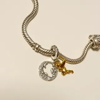 Este encantador colgante presenta a Campanilla con un diseño de luna y estrellas. - Colgante de plata S925. - Figura de Campanilla en tono dorado. - Detalle de luna y estrellas. - Compatible con pulseras tipo Pandora.
