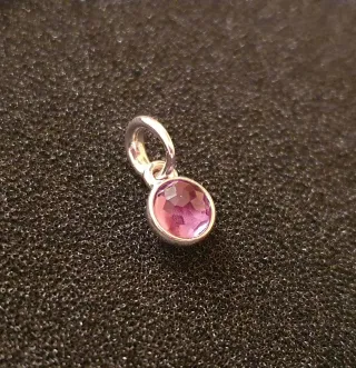 Charm con piedra natal del mes de febrero, con un hermoso tono amatista. Ideal como regalo de cumpleaños para personas nacidas en febrero. - Diseño elegante con piedra redonda. - Engaste de plata. - Plata 925