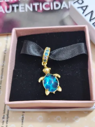 Este encantador charm de Pandora presenta un diseño de tortuga marina con detalles en cristal azul y acabado dorado. Es un accesorio perfecto para añadir un toque especial a tu pulsera. - Diseño de tortuga marina. - Detalles en cristal azul. - Acabado dorado. Como nuevo con caja original