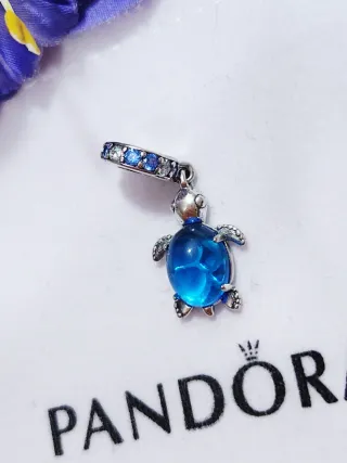 Este encantador charm de Pandora representa una tortuga marina con un diseño detallado. - Elaborado en plata. - Detalle de circonitas azules y transparentes en el asa. - Cuerpo central de cristal azul. Como nuevo y se vende en una bolsita Pandora