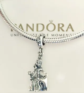 Charm Colgante Bella en la Bella y Bestia de Disney. Un detalle encantador para tu pulsera Pandora. - Diseño detallado del vestido con cristalitos color Amarillo brillante. - Detalle de Bella sujetando en la mano una Rosa. - Se entrega con su saquito original