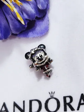 Encantador charm de Minnie Mouse con temática navideña, perfecto para añadir un toque festivo a tu pulsera. - Diseño detallado de Minnie Mouse. - Detalles en color rojo y plateado. Usado pero en buen estado