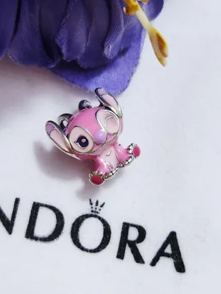 Charm de Angel, el personaje de Lilo y Stitch de Disney. - Diseño detallado en plata y esmalte rosa. - Inspirado en el personaje de Disney. Como nuevo y con caja original