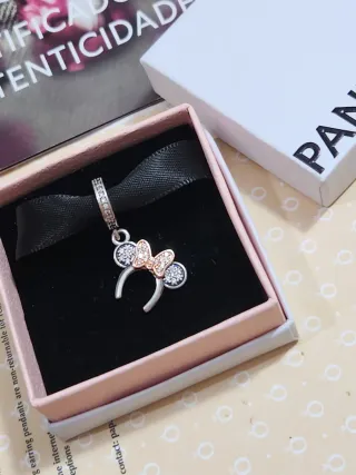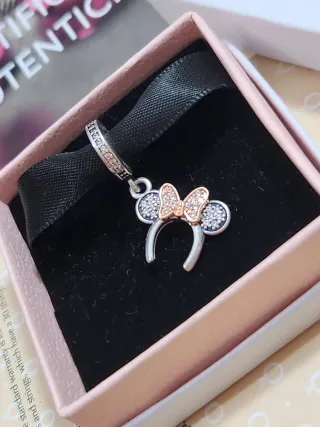 Charm Pandora Minnie Mouse Balaca Orejas Dos Tonos Oro Rosa y Plata S925 Original - Diseño de orejas de ratón con detalles brillantes. - Lazo central en tono rosado. Como nuevo en su caja original