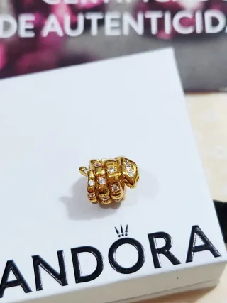 Charm de serpiente enroscada con baño de oro de 14 quilates. Un diseño detallado y brillante. - Baño de oro de 14k. - Incrustaciones de circonitas. - Diseño de serpiente enroscada. En perfecto estado y con bolsita Pandora