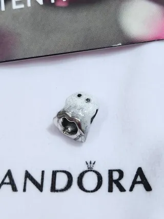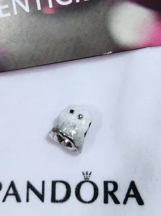 Encantador charm de Pandora con diseño de fantasma. - Acabado brillante con detalles que brillan en la oscuridad. - Color plateado y blanco. En perfecto estado y con bolsita Pandora