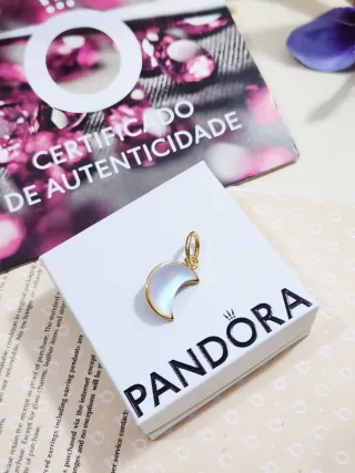 Charm de la marca Pandora con diseño de luna brillante. - Color dorado y multicolor. - Incluye certificado de autenticidad. Como nuevo en su caja original