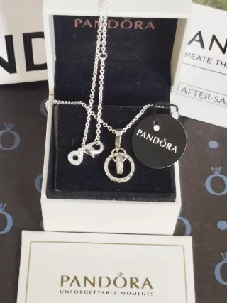 Elegante collar Pandora de plata 925. - Diseño con colgante circular. - Cadena fina y delicada.