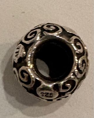 Este mini charm de Pandora tiene un diseño con espirales. - Fabricado en plata. - Grabado 925 visible.