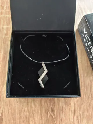 Colgante de la marca Viceroy, unisex. Acero. Correa en negro. Cierre y colgante grabados. Como nuevo, incluye la caja.