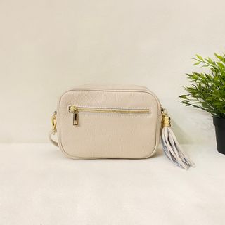 Bolso Piel Italiana Hombro Beige 0101