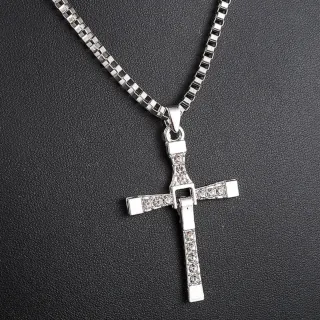 Colgante inspirado en la saga Fast & Furious. Collar de hombre del personaje rápido y furioso Dominic Toretto. Está nuevo sin estrenar Un accesorio llamativo y con estilo. Diseño de cruz con incrustaciones brillantes
