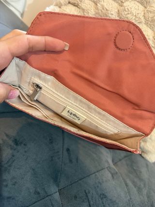 Bolso de mano o bandolera de la marca Kipling en color rosa. - Diseño tipo sobre. - Correa ajustable. - Detalle de logo circular en la solapa. - Colgante metálico con forma de mono.