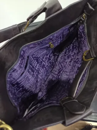 Elegante bolso de piel morado edición limitada con la cadena con colgante PG y colgante original de PURIFICACIÓN GARCÍA,en perfecto estado, asas cadena perfectas con los colgantes ,cierres y herrajes metálicos impecables , usado solo en un evento , base y esquinas perfectas . Es muy movido por su diseño de edición limitada . Interior forrado con la marca . Mide 18 cm de ancho 14cm alto 4 c. Fondo . Es precioso pequeño y precioso - Cierre de solapa con logo. - Cadena metálica para llevar al hombro o cruzado. - Adornos colgantes con cuentas y logo.
