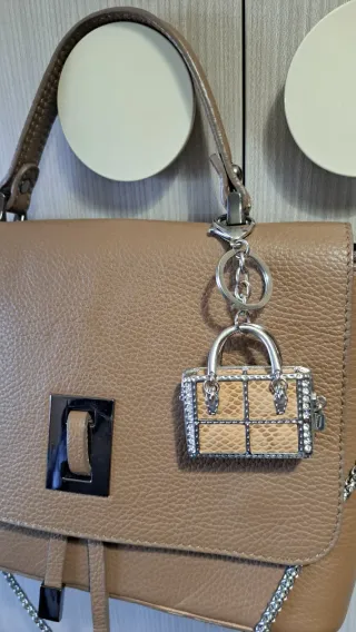 Bolso de mano en color camel con un diseño elegante y moderno. Perfecto para complementar cualquier atuendo. - Material con textura. - Adorno de estrella colgante. - Cierre de correa.