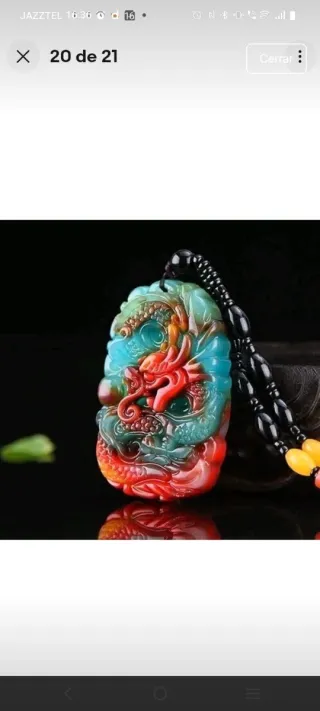 Este objeto es un collar con colgante de dragón de jade tallado, que a menudo se utiliza como un amuleto de la suerte o protección en la cultura china. Características del Producto Diseño: El colgante presenta una talla detallada de un dragón chino (y a veces un Pixiu), símbolos de poder, fuerza y buena fortuna. Material: Se describe frecuentemente como jade de color natural, aunque algunas variantes pueden ser de jade ágata. Colores: Presenta una mezcla vibrante de tonos que incluyen verde, azul, rojo y naranja. Uso: Viene montado en un cordón ajustable o una cadena de cuentas, adecuado tanto para hombres mujer...