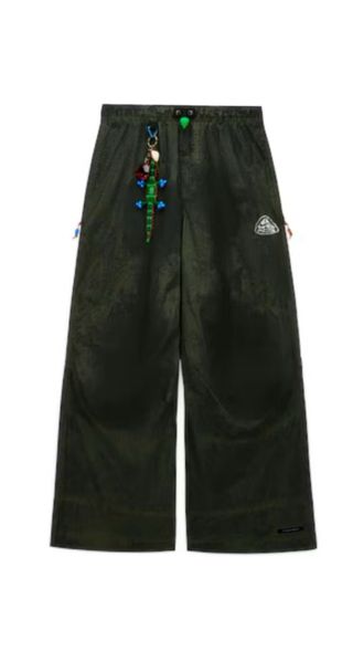 Pantalón de la colaboración Nike ACG x CPFM en tono verde oliva. Presenta un diseño ancho y moderno. - Detalle de charms colgantes en la cintura. - Parche con logo en el lateral derecho. - Cordón ajustable en la cintura.