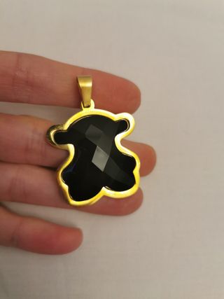 Colgante grande comprado en joyeria, en metal dorado con oso tipo Tous en piedra negra labrada. Sin usar. Perfecto para regalo. Viene con bolsa de regalo gris transparente (ver foto)