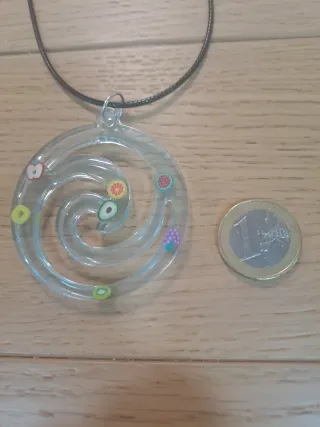 Colgante con diseño de espiral hecho de resina transparente. Incluye pequeñas incrustaciones de frutas. - Diseño de espiral. - Decorado con frutas. - Material: Resina. -A estrenar.