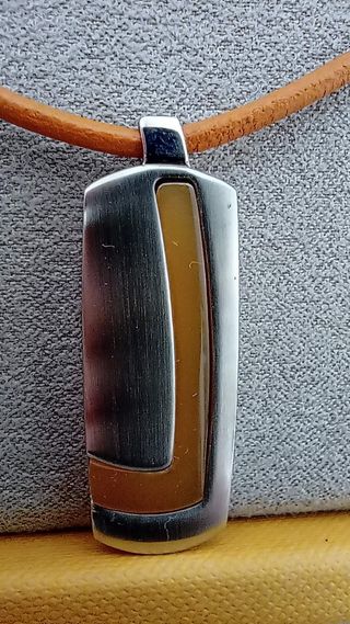 Colgante plateado de Milo J Grabado a laser Acero inoxidable Precio no negociable, solo hago envios