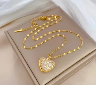 Elegante colgante con forma de corazón, adornado con pequeñas piedras brillantes. Su diseño delicado lo hace perfecto para cualquier ocasión. - Colgante con forma de corazón. - Acabado dorado brillante. - Decorado con circonitas cúbicas sintéticas.