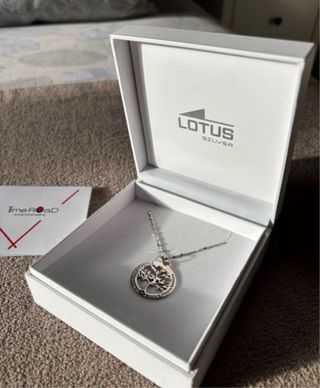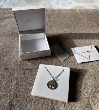 Colgante de marca LOTUS en acero con cordón de cuero de 50 cm de largo, fácil de cortar si es necesario y con broche de acero, es nuevo.