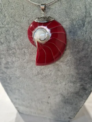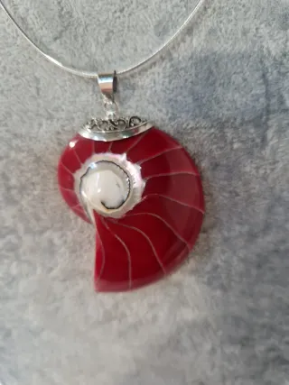 Colgante con forma de nautilo, una pieza de joyería única. - Diseño inspirado en la naturaleza. - Detalle en espiral. - Cierre plateado.